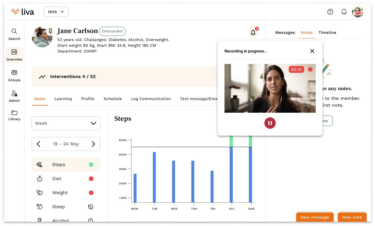 Health coaches at Liva Healthcare (working with NHS, Convatec, and Novo Nordisk) were struggling with a fragmented user experience. Patient information and platform features were scattered across multiple pages, creating a cumbersome workflow with excessive clicking and window switching. During critical video consultations, coaches couldn't simultaneously access patient data while engaging with patients.
